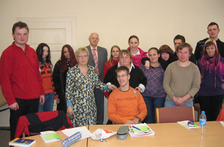 vorbereitet hatten und an Günter Baumann Fragen stellten.