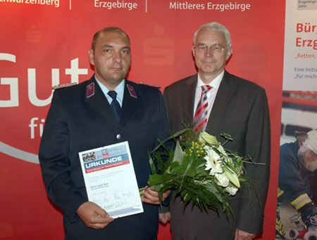 > Frank Racz, Leiter der Freiwilligen Feuerwehr Marienberg, Laudatio: MdB