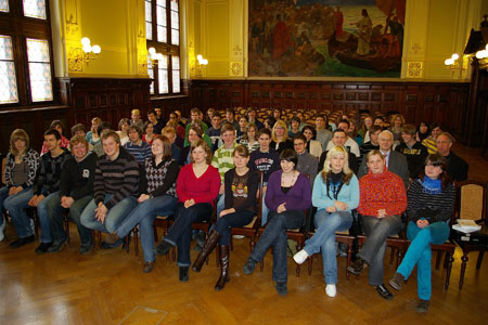 Im Anschluss bestand für die Schülerinnen und Schüler noch die Gelegenheit, Fragen an den Politiker zu stellen, wovon sie auch reichlich gebraucht machten. Dabei spielte aber nicht nur die Vergangenheit von Politkern in der ehemaligen DDR eine Rolle, sondern auch ganz aktuelle Themen, wie Finanzkrise, Wirtschaftskrise, Renten, Wahlen im Jahr 2009, Probleme der Zukunft oder der Umgang mit extremistischen Parteien von Links und Rechts, kamen zur Sprache.
