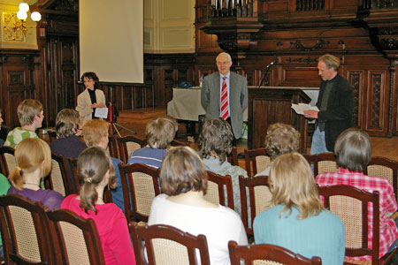 Die beiden Unterrichtsstunden mit sehr interessierten und aufgeschlossenen 12-Klässlern endeten mit zehn Fragen an Günter Baumann. Die letzte Frage, was Angela Merkel am 28. September 2009 macht, beantwortete Günter Baumann schnell: „Sie freut sich, durch das Wahlergebnis als Bundeskanzlerin weiter arbeiten zu können.“