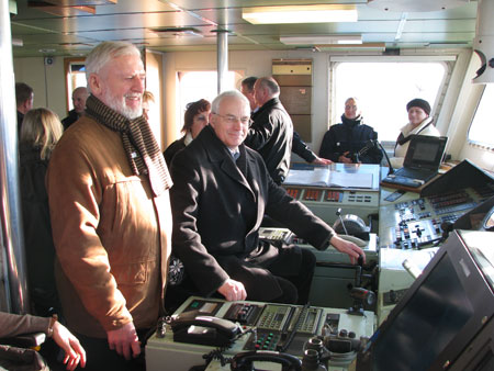 Günter Baumann am Steuer des Bundespolizeischiffes