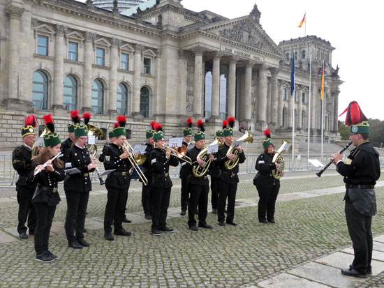 Brandenburger Tor und zum anderen vor dem Reichstagsgebäude den Steigermarsch,