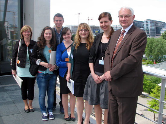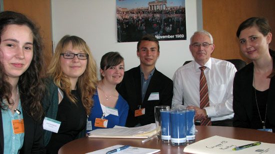 beantwortete die Fragen der sehr engagierten Gymnasiasten Anne Schädlich, Lucian