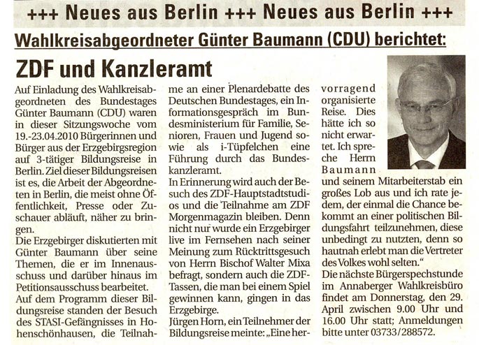 Wahlkreisabgeordneter Günter Baumann (CDU) berichtet für den Wochenspiegel