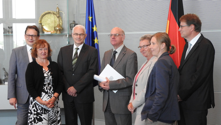 und übergaben diesen dem Bundestagspräsidenten Prof. Dr. Norbert Lammert.