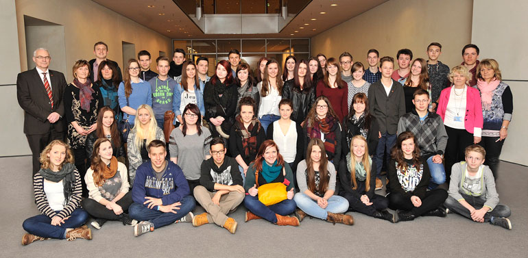 die Schneeberger Schüler mit MdB Baumann im Reichstagsgebäude (Foto: Büro