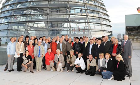die Reisegruppe mit MdB Baumann vor der Kuppel des Reichstages