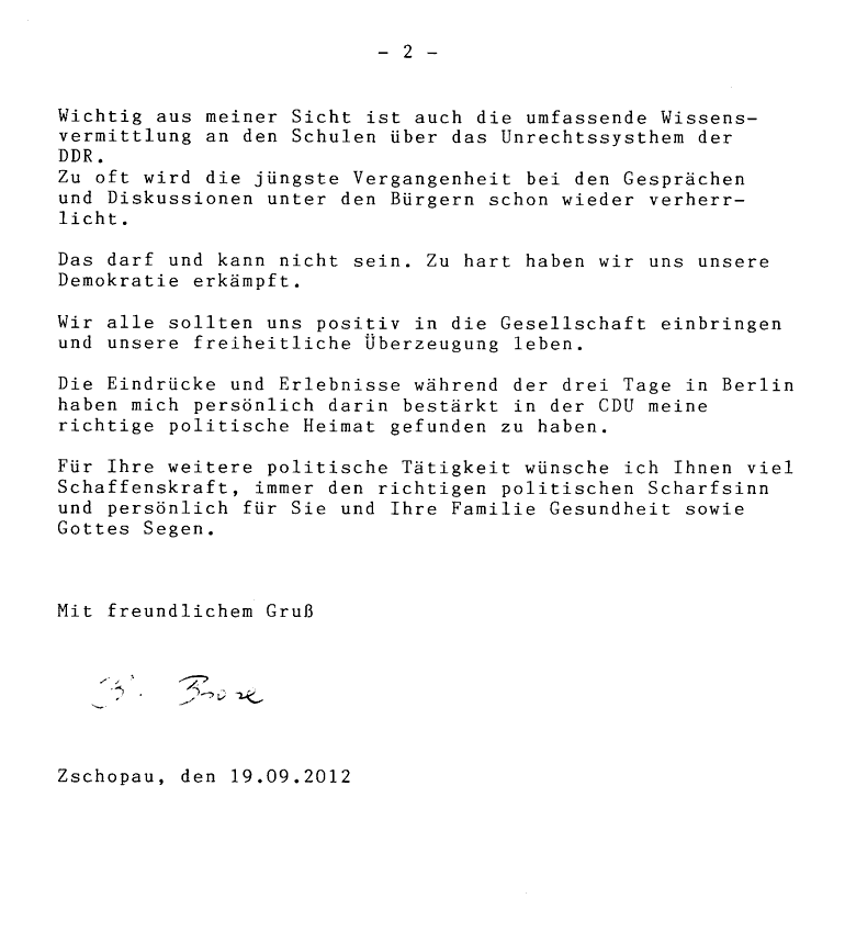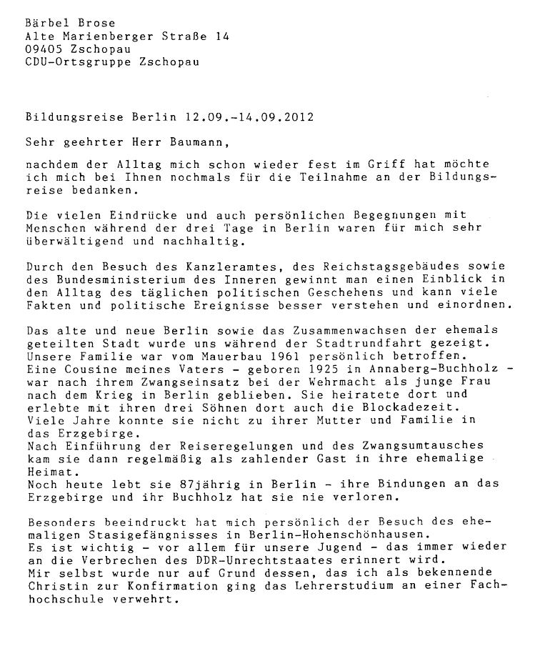 Eine Danksagung per Brief von Frau Brose aus Zschopau.