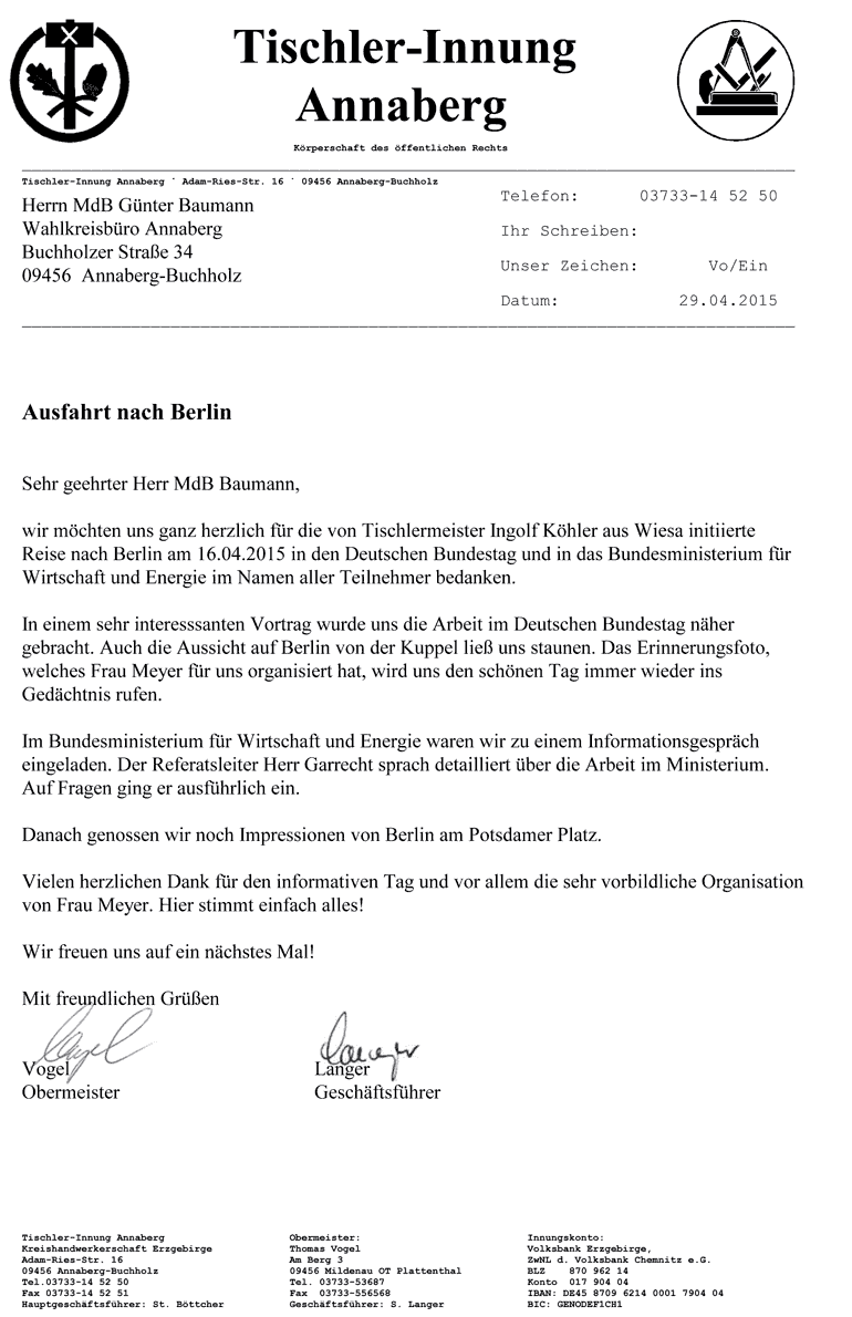 zu der Idee, die Mitglieder der Innung zu einem Besuch nach Berlin, in den