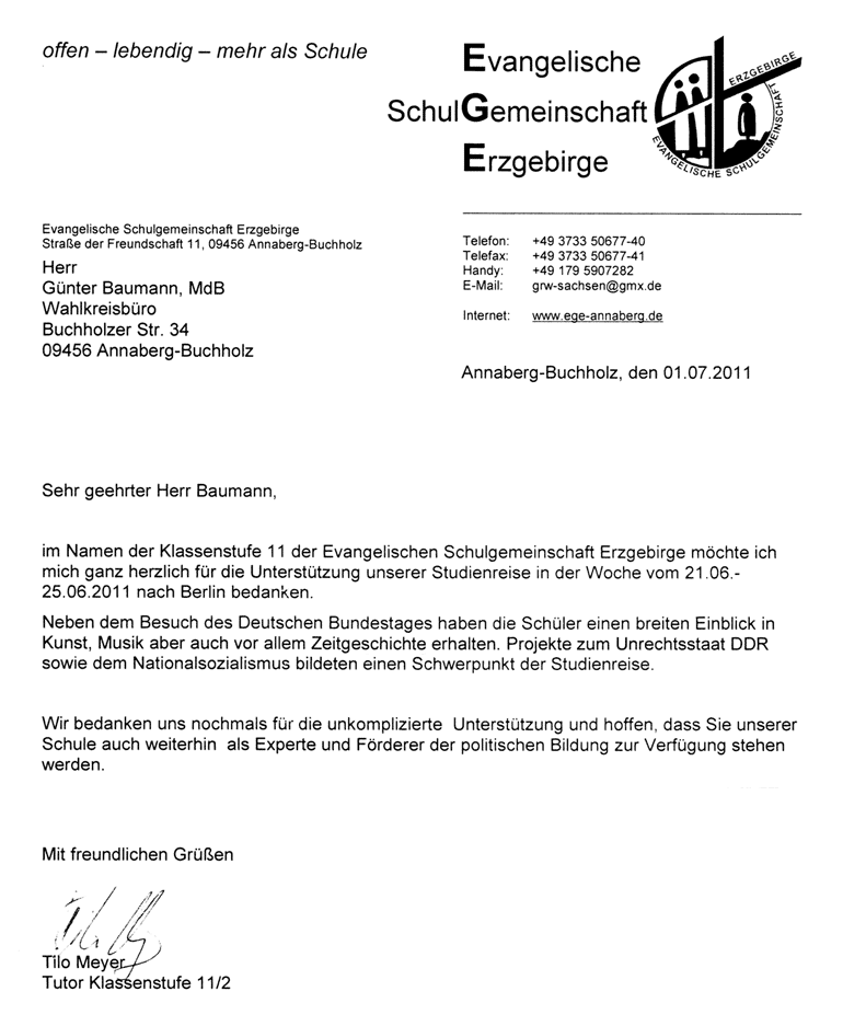 Schülerinnen und Schüler des Evangelischen Gymnasiums Annaberg den Deutschen