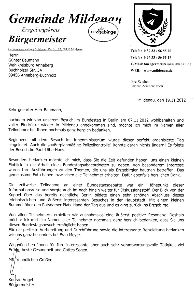 Dazu ein Brief des Bürgermeisters Konrad Vogel.