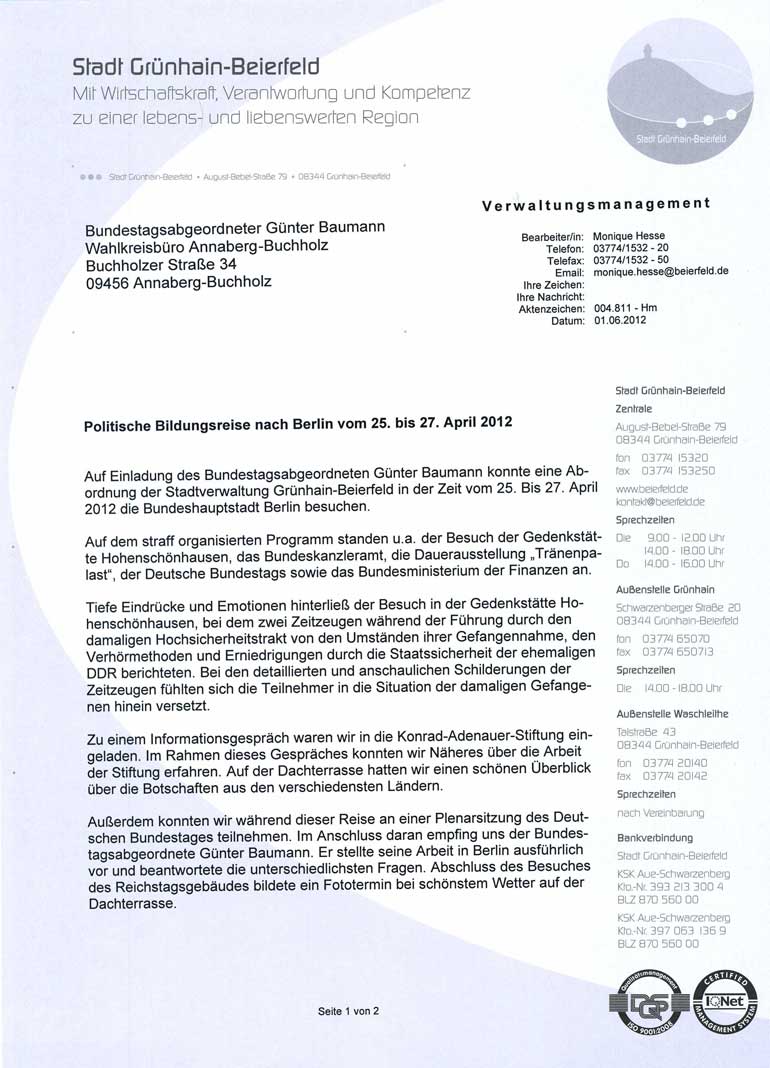 Zur Bildungsreise vom 25. bis 27. April 2012 wurden von MdB Baumann eingeladen: