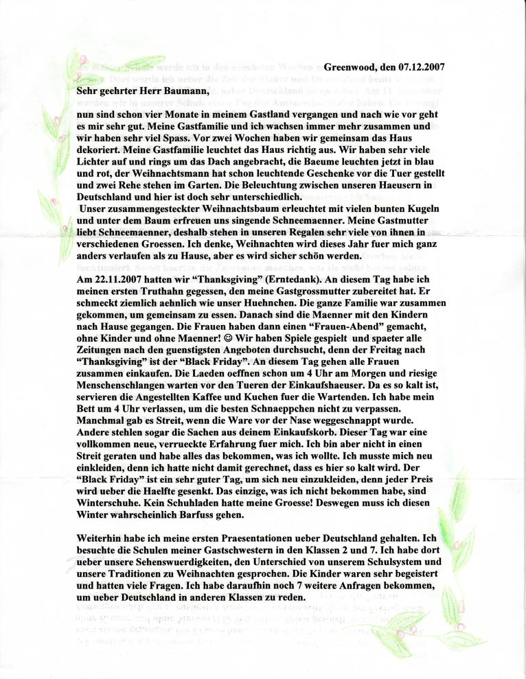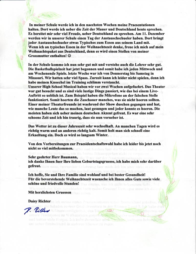 Im Januar 2008 erreichte uns ein weiterer Brief unserer Austauschschülerin Daisy Richter aus ihrer Wahlheimat Arkansas.