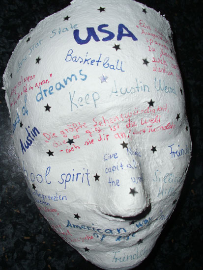 ein Bild meiner Gipsmaske, mit meinen Gedanken. Auf der Innenseite brachte ich
