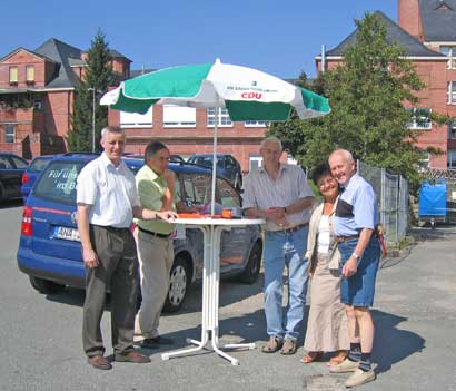 Info-Stand in Stützengrün mit Bürgermeisterin Birgit Reichel: