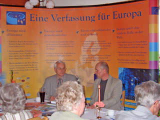 Der Politiker erläuterte das Entstehen der Europäischen Gemeinschaft und ging besonders auf die Erweiterung vom 1. Mai 2004 ein. Im Mittelpunkt stand die Frage, was Europa für unsere Region bedeutet, überwiegend Chance oder Risiko.