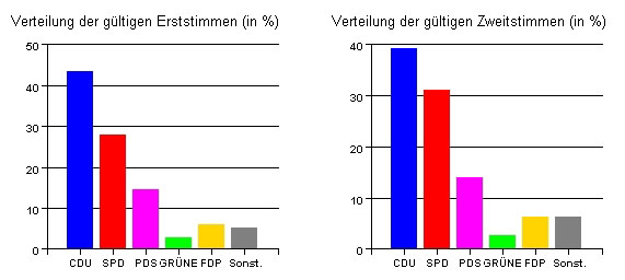 Zweitstimmen bei der Wahl zum 15. Deutschen Bundestag am 22.